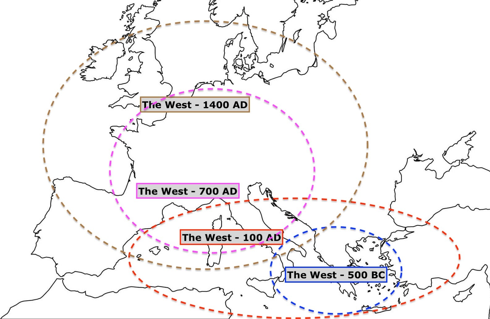 In 2012, economic historian Niall Ferguson wrote The West and the Rest. This was the tail end of the decade-long “war on terror,” when the “clash of civilizations” between the West and Islamic radicalism dominated our view of global geopolitics. An overview of the book on Amazon asserts that “Western civilization’s rise to global dominance is the single most important historical phenomenon of the past five centuries.” This is a defensible claim, and Ferguson’s narrative was only the latest in a well-established genre exemplified by William H. McNeill’s 1963 The Rise of the West. The dominance of the West today, and its earlier explosion across the world after 1600, demand explanation.